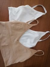 A great option for home, until the straps are stretched, very thin. With a girth under the chest 72 cm comfortable size. The white top is slightly wider than the beige one. The fabric is pleasant synthetics, the quality of tailoring with minor warmers. Fast delivery in prefab parcel