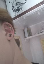 Pretty fast shipping. The size would like more, but it also looks good. Wore a day, and although very allergic ears, everything is OK. Bought in the kit to the ring, the style is slightly different, the earrings are smooth, the ring is not