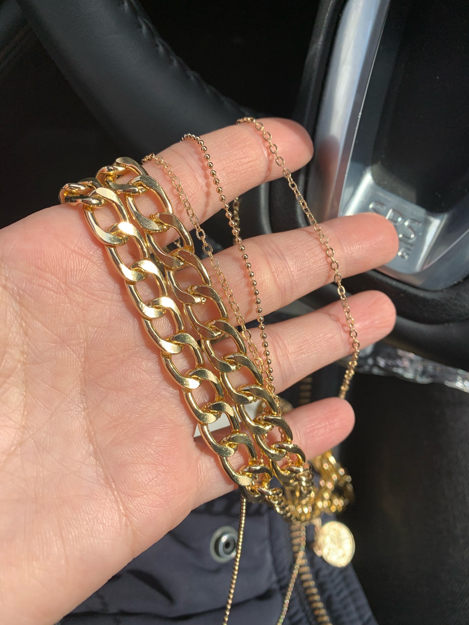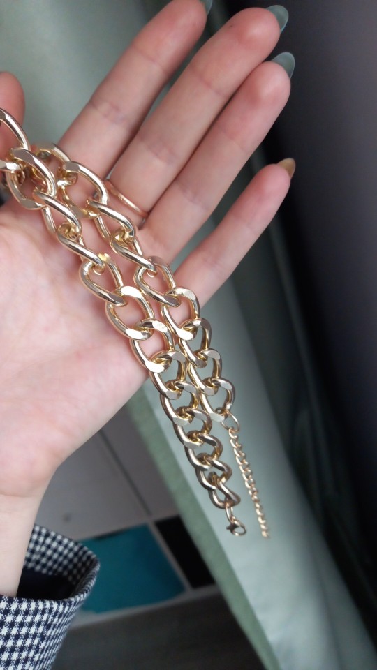 The chain is light, plastic. In general, it looks good, but the color of "gold" is too yellow. It came very quickly (2-2,5 weeks), but that together with other orders.