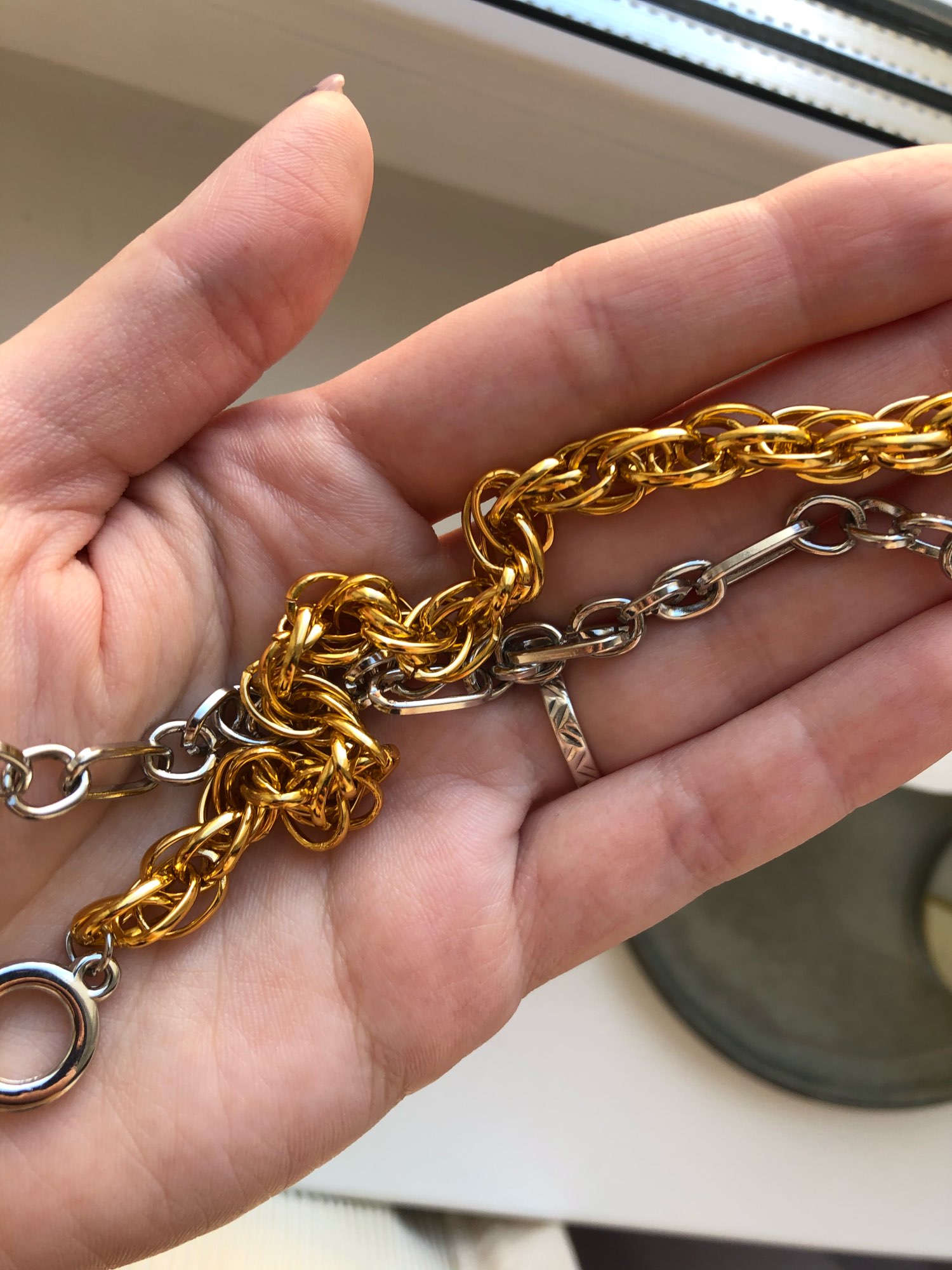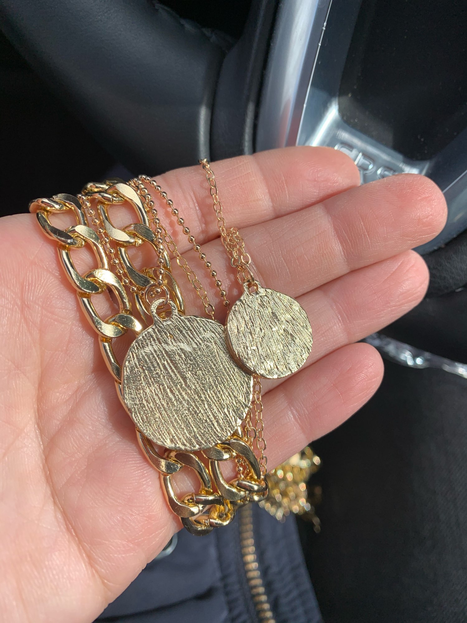 Absolutely love this set of necklaces. I wear them all the time, even in the shower and I haven’t noticed a color change. At first the clip is a little stiff but the more you use it the easier it is to use. It came a week early which I absolutely love. 100% recommend this set. Love it!!!