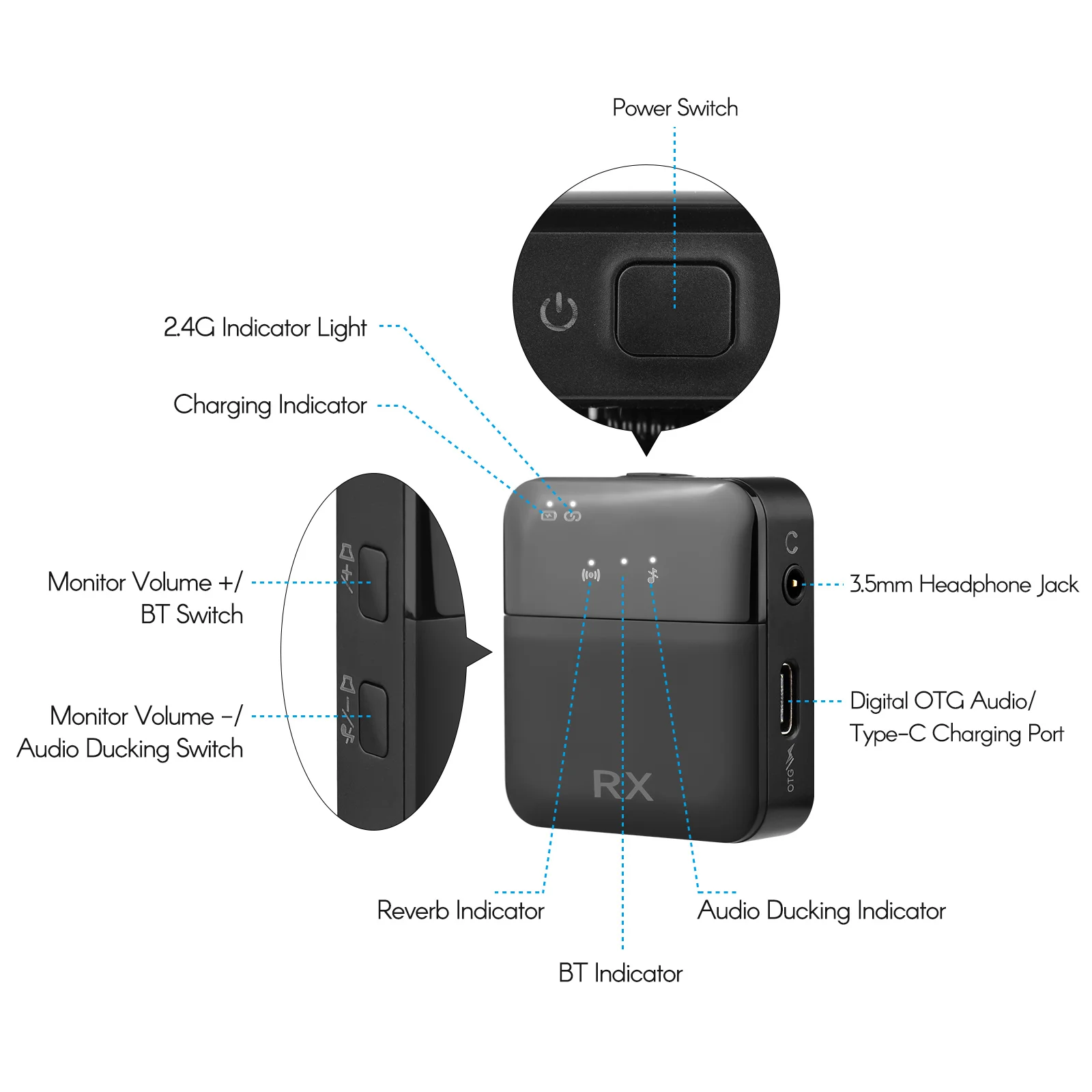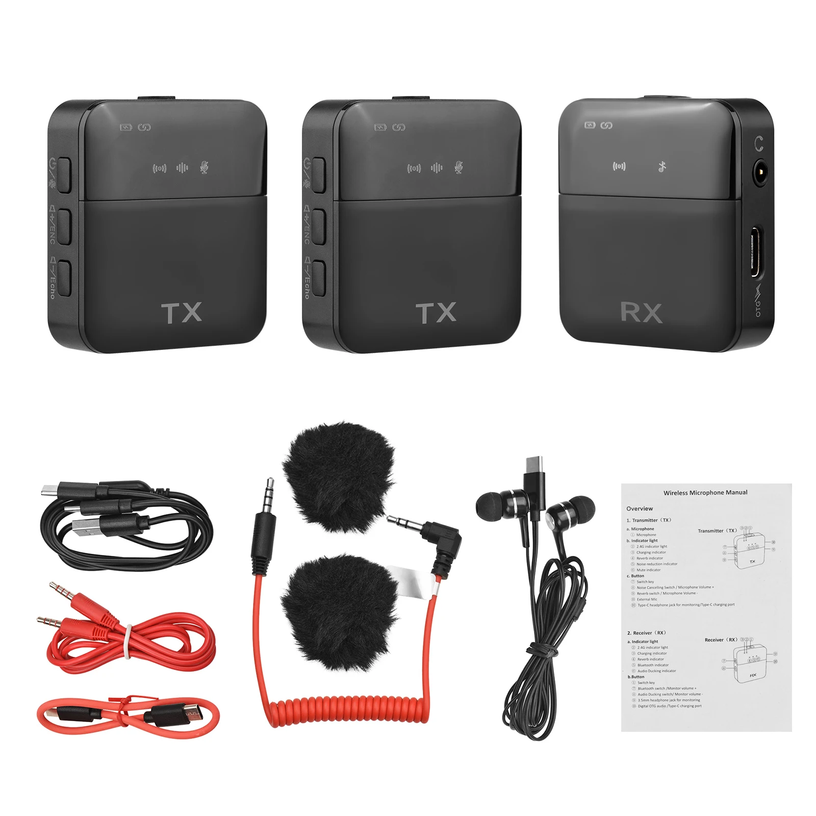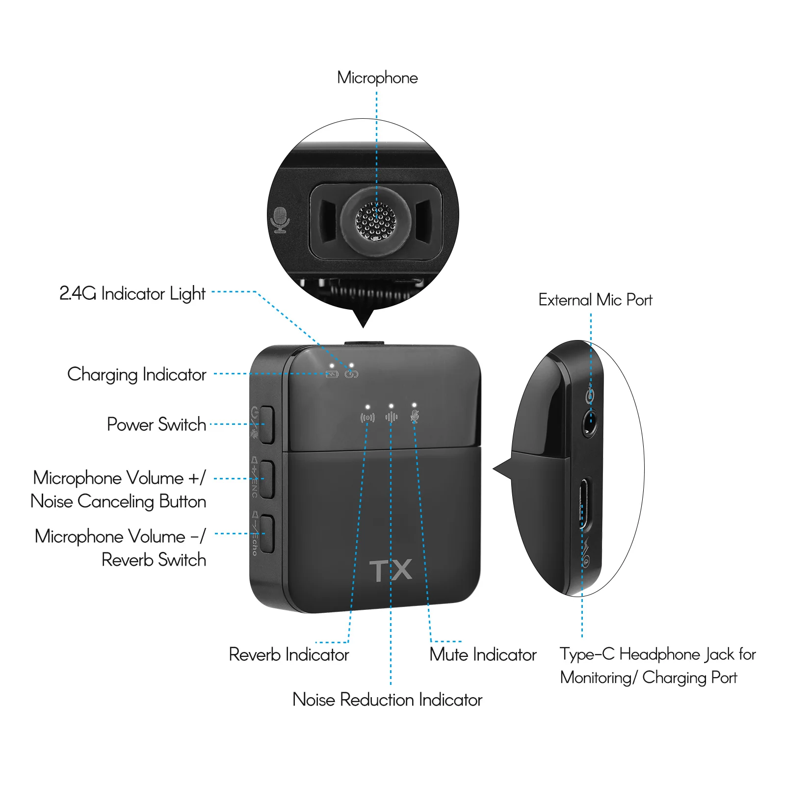 [Omnidirectional Condenser Microphone] Includes 2 transmitters and 1 receiver, omnidirectional pick up pattern, can pick up sound from all directions and reproduce it clearly; adopt smart ENC noise reduction technology, can effectively reduce plosive, background noise, and wind sound.