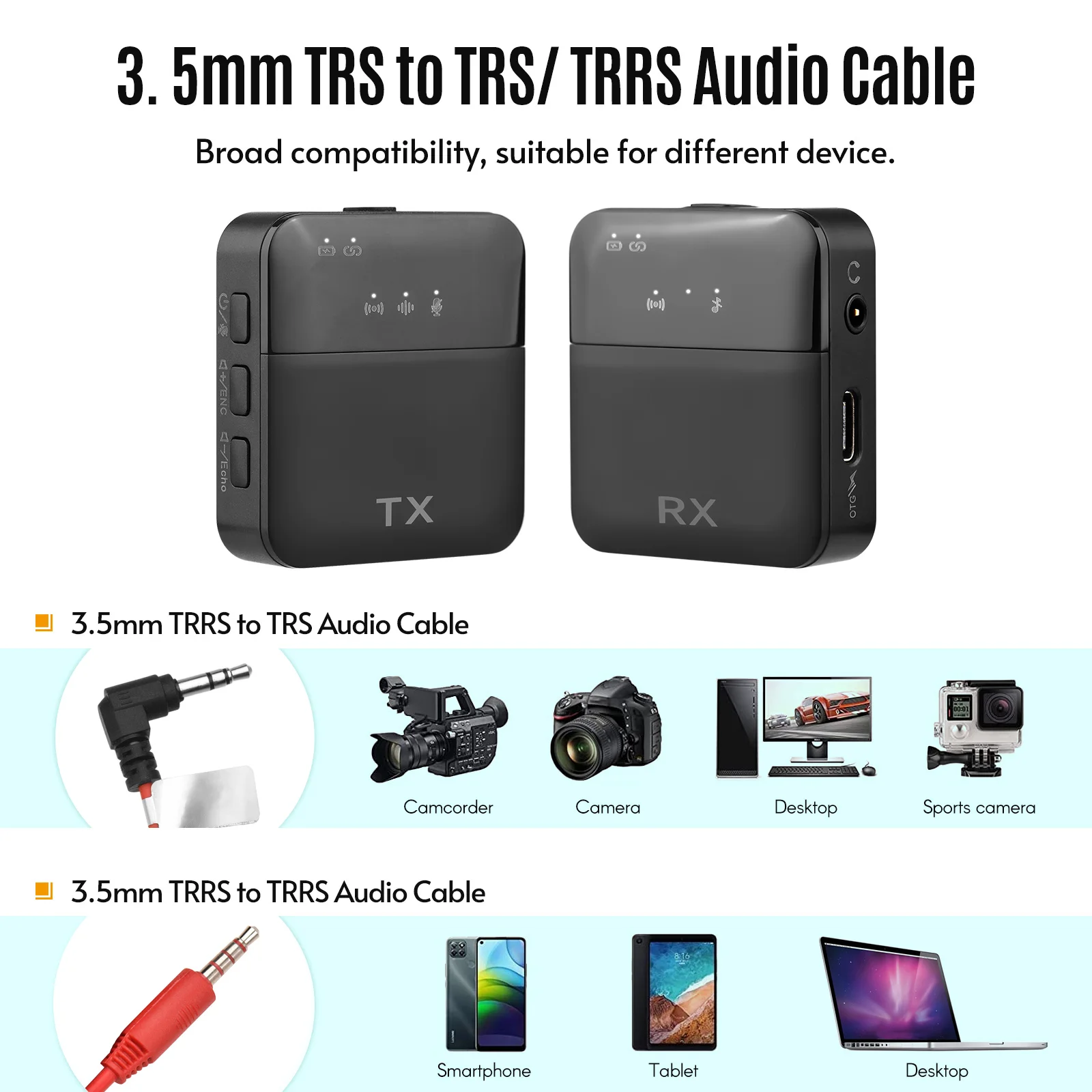 [Broad Compatibility] Equipped with 3.5mm TRRS to TRRS and TRRS to TRS audio cable, widely compatible with smartphone, camera, and camcorder, great for Vlog video recording, live stream, interview, online teaching, business meeting, etc.