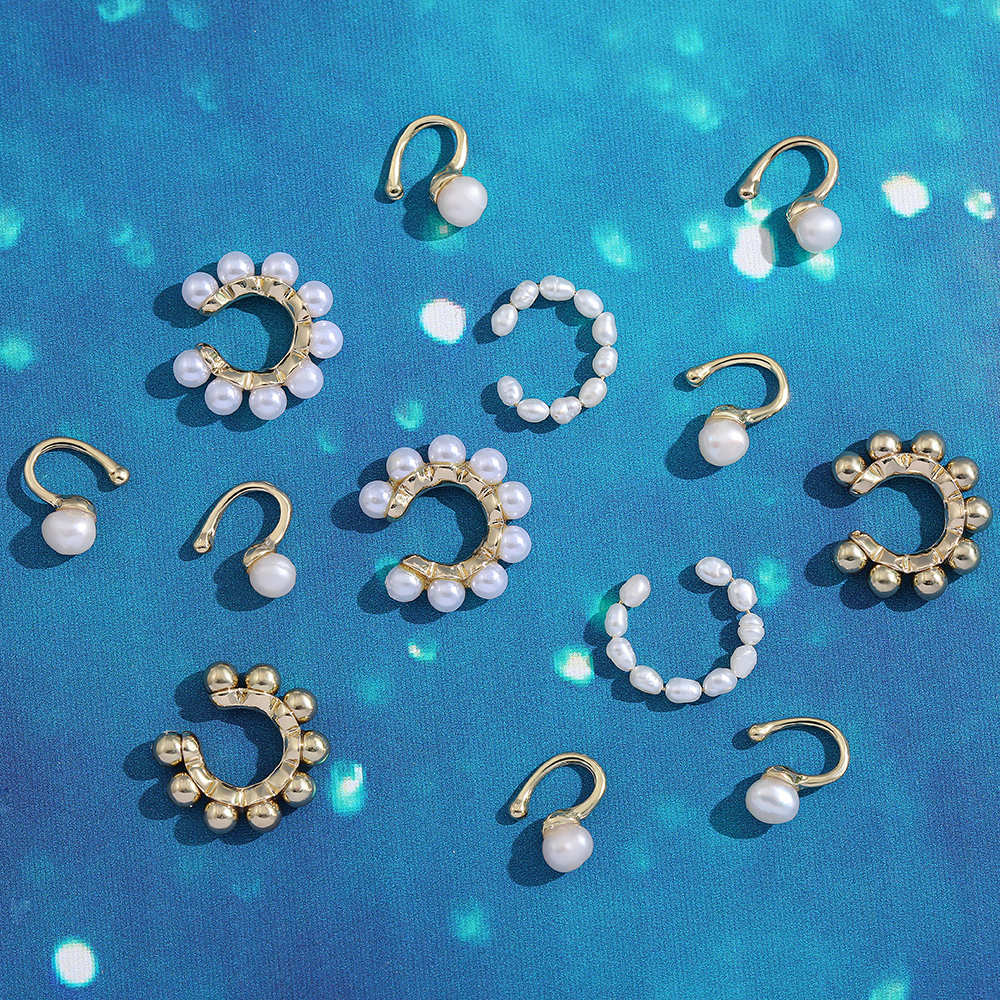 красивые удобные каффы, выглядят отлично, качество тоже вроде норм. Серьга из барочных бусинок мне на ухо великовата, поэтому больше нравится носить как кольцо на пальце.
