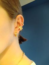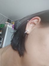 Very beautiful, but I apparently have some small ears for this cuff, descends almost to the urine (covers the earring) and looks bulky. I recommend people with big ears! (although someone wrote that despite small ears this cuff turned out to be small)