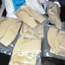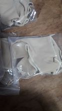 The parcel was a month, did not track, it looks like in the photo, elotic, the separator for the fingers is very soft, as in the sock I can not say, because I did not order it for myself.