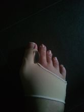 Well made item and quite comfortable to wear. Material is elastic and pleasant to the skin. Separator is smooth, soft and rubber like, there is also pad covering side of the foot made with same rubber like material (it's hidden inside "sock"). It is needed to get used to wearing it but it's not uncomfortable, just different. It won't fix everything and it won't be instant, definitely not advanced hallux, but it can be helpful in first stages.