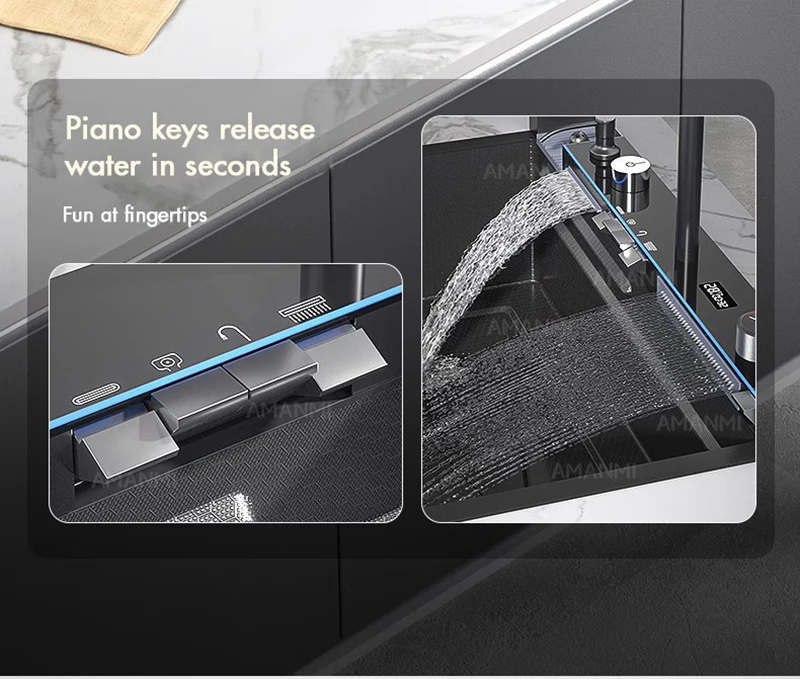 Stainless Steel Waterfall Kitchen Sink With Integrated Digital Display Health & Beauty Color : 4button A 75X45CM|60X45CM 002|2 button75X45CM-D2|60X45CM 001|2 button75X45CM-D1|4 button B 75X45CM|Brush Gold A 75X45CM|White A 75X45CM|60X45CM 003