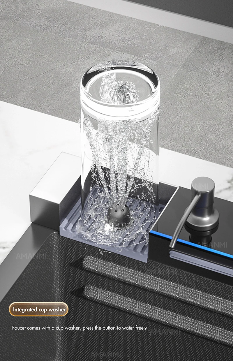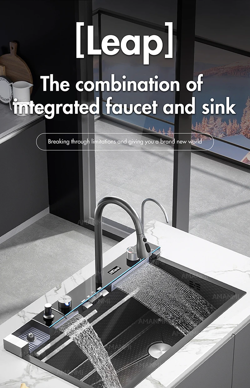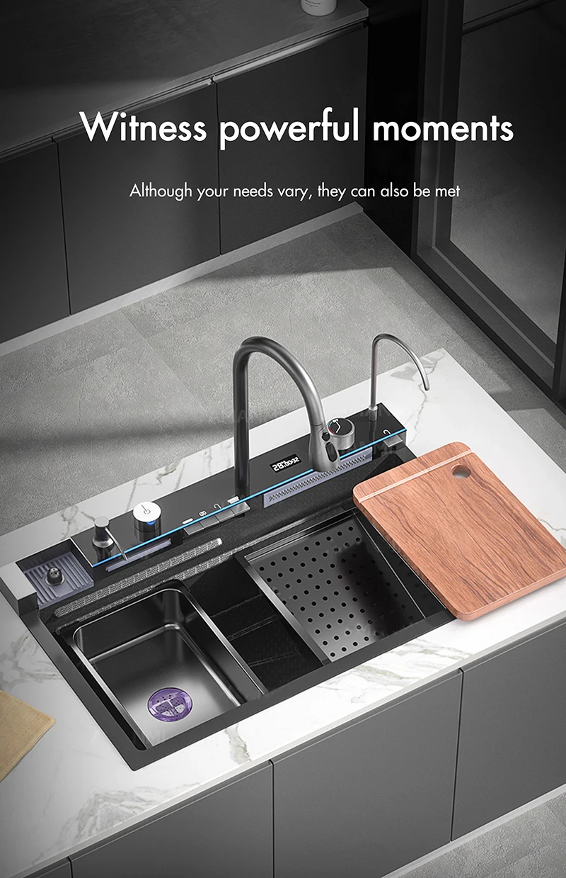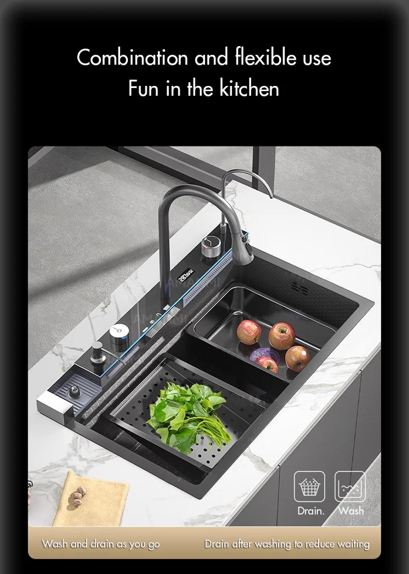 Stainless Steel Waterfall Kitchen Sink With Integrated Digital Display