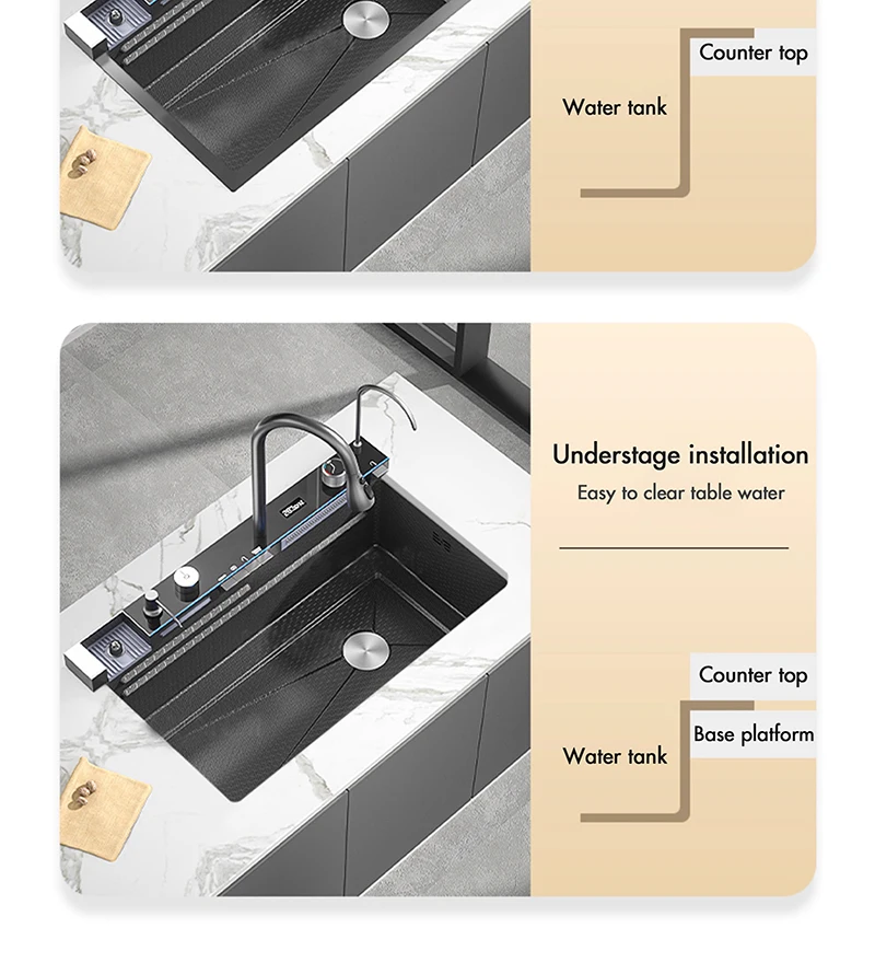 3.Our range of kitchen sinks will support your kitchen. Each sink is built to grades for optimum performance, including support for sturdiness, hygiene and strong corrosion resistance. These sinks have a wonderful modern design and also come with waste and filters. Every kitchen needs kitchen accessories, high quality, beautiful sinks and cleaner sinks. Make you fall in love with the kitchen and bring convenience to the kitchen.