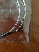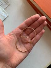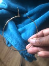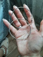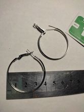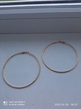 Хорошенький сережки, но гвоздик на одной был искривлен. Выгнула его на место, материал вроде надежный. Застежка плотная, понравилась. Будут ли темнеть не знаю, но мне не принципиально, т. к. серьги для обвязки бисером брала. На ухе серьги смотрят в стороны, но возможно чуть прогнув они встанут на место. Брала диаметром 4 см. Посылка дошла очень быстро