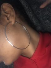 The item is true to size (see picture - I ordered 80mm). I love them. Arrived in London in 2 weeks and I could track it all the way. Only thing I did not realize was that you pull it apart to put it on - see fourth image. I assumed that the clip snapped up and down, but it's fine, it was easy to put on. However, this was only with the silver earrings, the snap feels really hard and feels like I would break it if I push it farther. The gold earring does not do this - added for comparison- fifth image. Nevertheless, I'm happy with how they look.