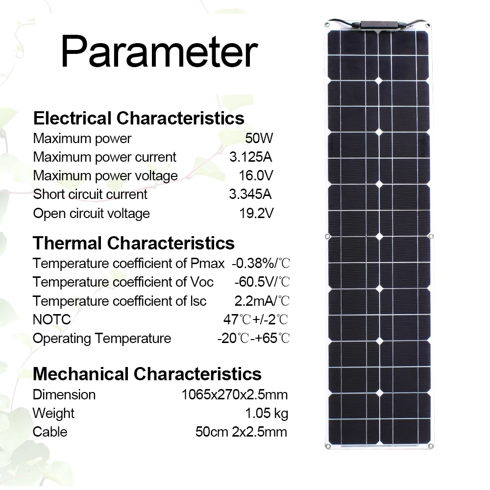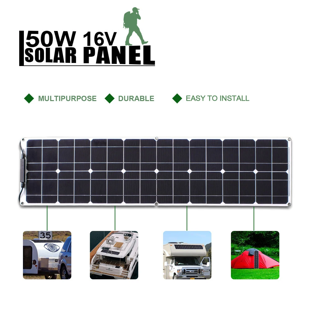The 50 Watt Flexible Monocrystalline Panel can be primarily used on off-grid applications that include rooftop, RV, boats and any curvy surfaces.