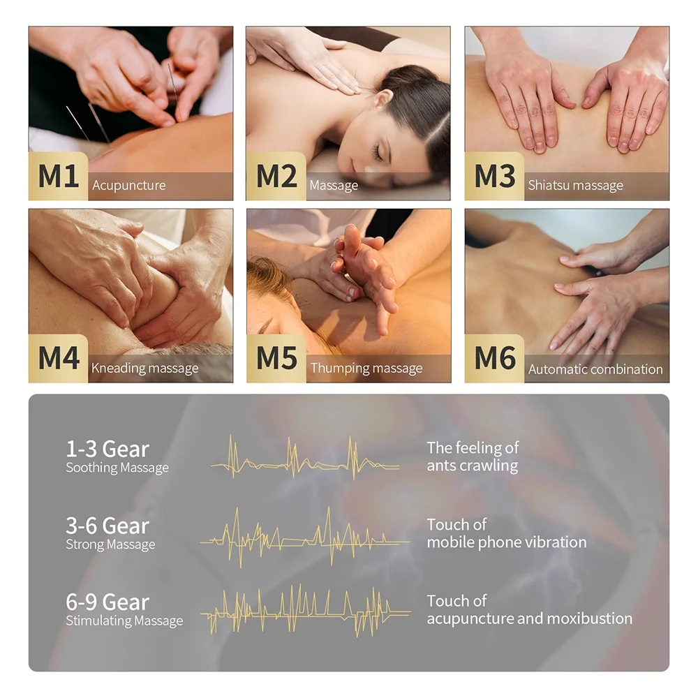 2.With 6 massage modes(acupuncture, massage, finger pressing, kneading, hammering and combination massage mode)