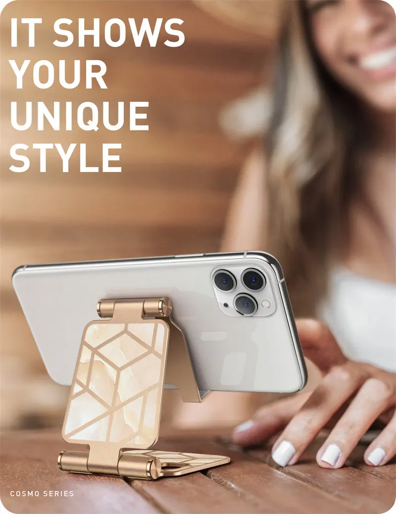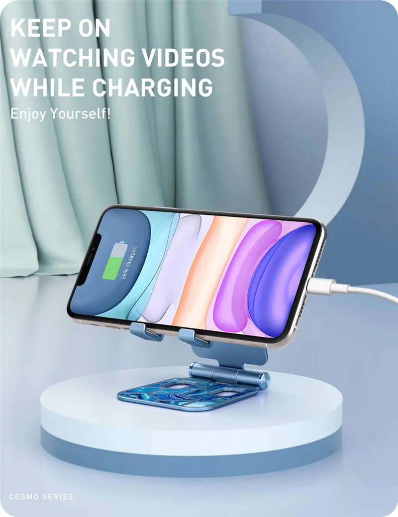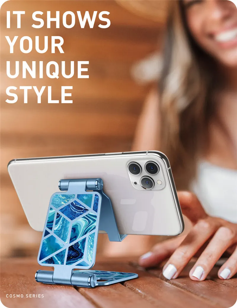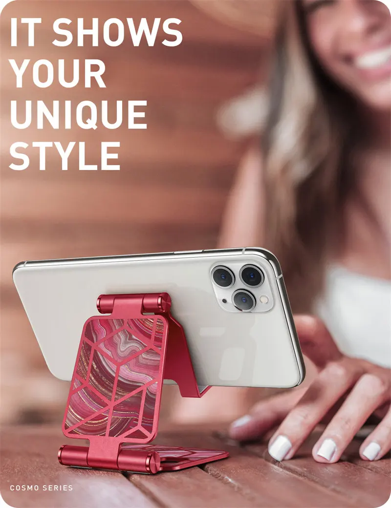Introducing our Cosmo stand for smart phones & tablets. This foldable & portable stand is made of high-quality aluminium alloy and features a silicone pad at the bottom to avoid skidding. It easily adjusts to multiple viewing angles for comfortable reading, movie watching, drawing or working.