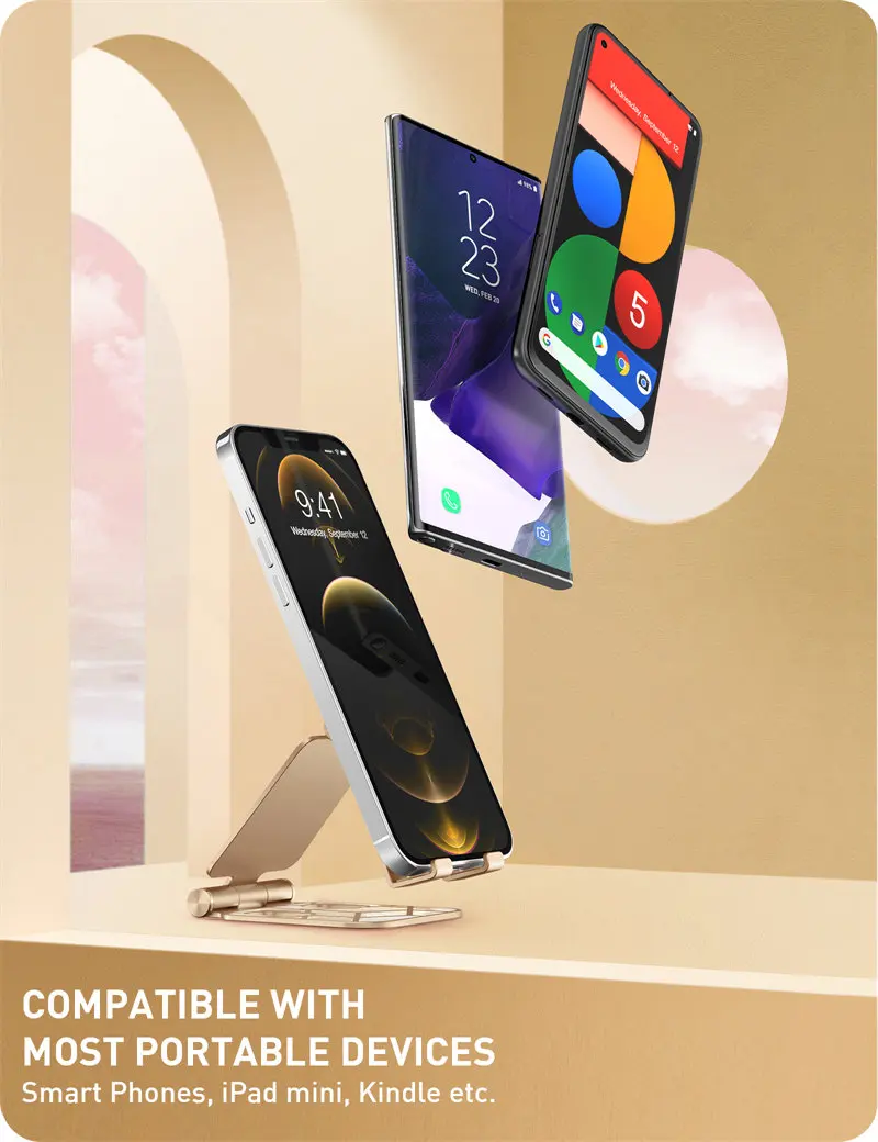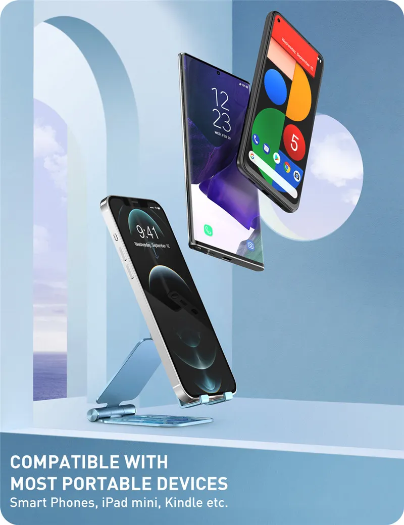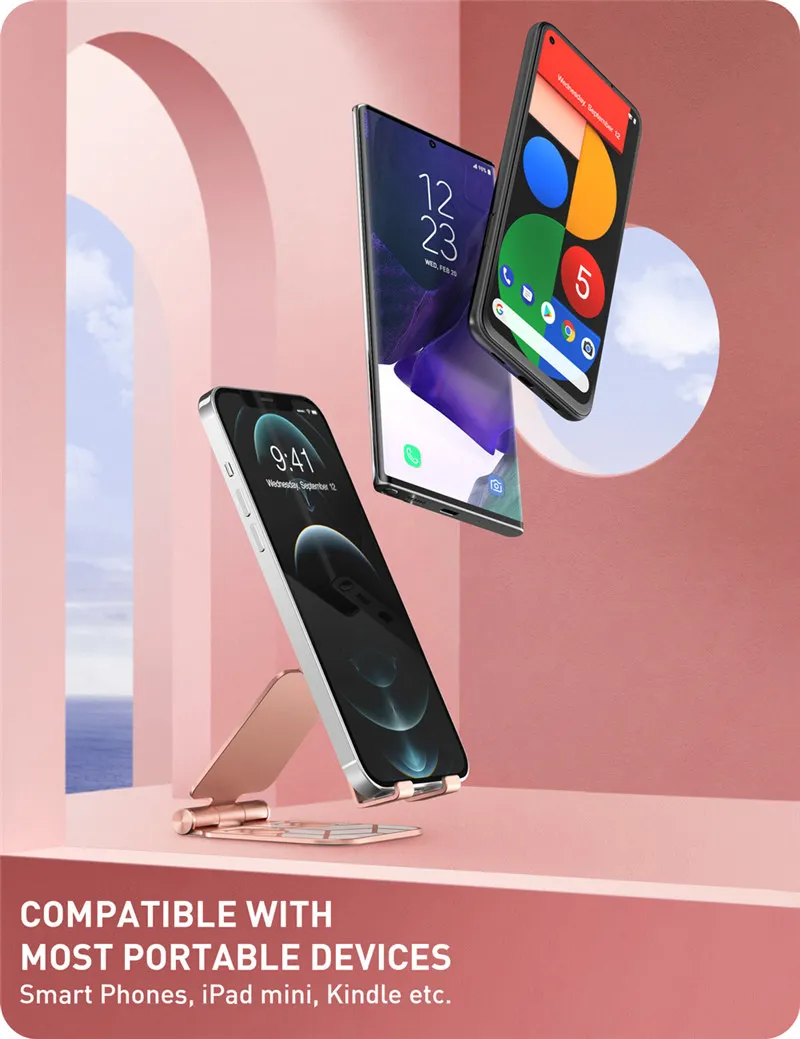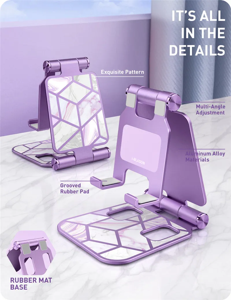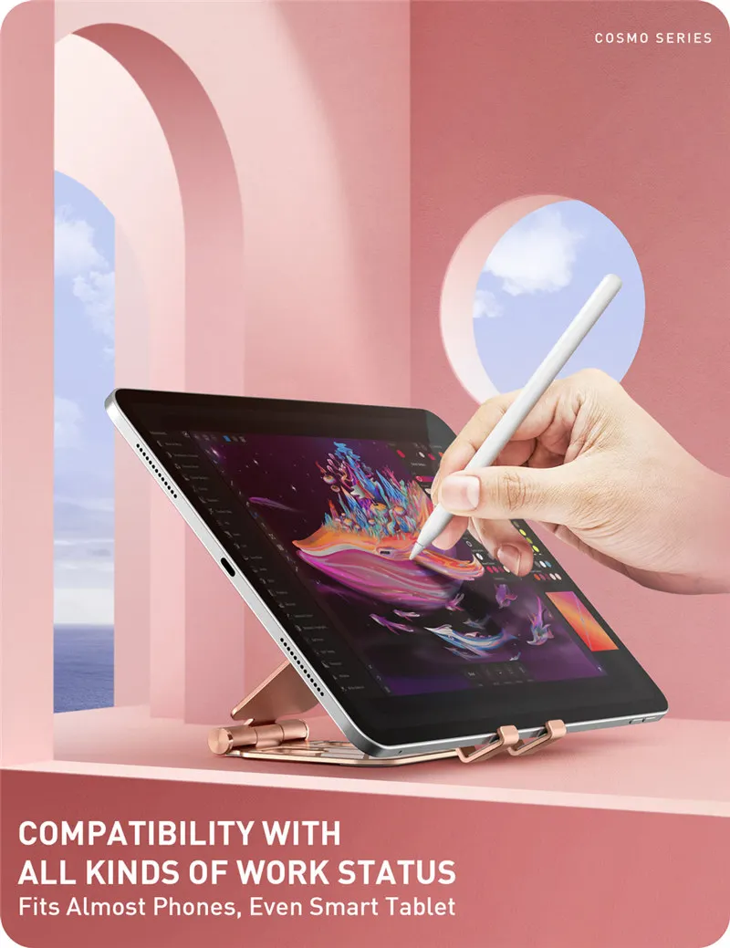 Introducing our Cosmo stand for smart phones & tablets. This foldable & portable stand is made of high-quality aluminium alloy and features a silicone pad at the bottom to avoid skidding. It easily adjusts to multiple viewing angles for comfortable reading, movie watching, drawing or working.