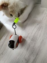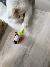Toy bomb. The cat is delighted, so am I. You let her in and she drives herself. I don't need to run with him and play. Compact, playful. Came already charged. I drove for 15 minutes, the battery did not stop. Satisfied with the purchase