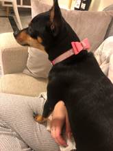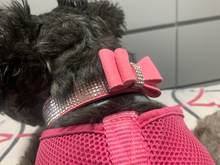 Cute. Beautifully glitters. Size S for dog 2 kg is troszkę loose but not falling. There was no size XS. Crystals were secured wrap. Fast shipping to Poland.