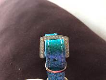 Beautiful! Much more beautiful than in the picture. The crystals don't stick out too much so they don't get tangled in anything. The glitter is very well attached and does not take off. The necklace is leather type, and the buckle has crystals as well. Perfect. Very fast shipping to Chile.