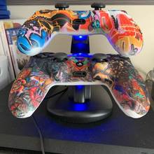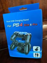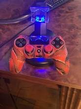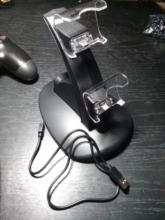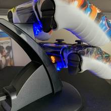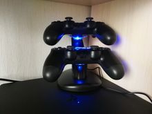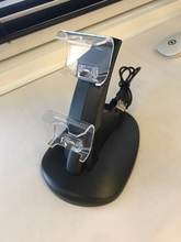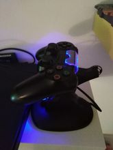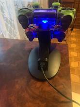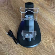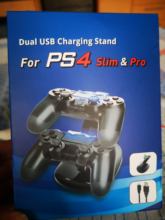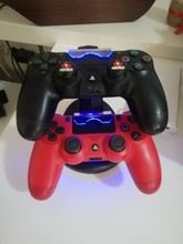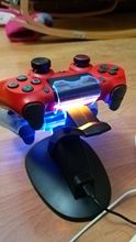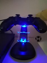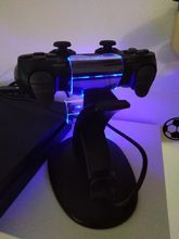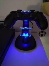 Suporte para comandos da Ps4 com carregador incorporado. Quando está ligado aparece uma luz azul. Suporte parece resistente. Adorei o artigo. Recomendo. Vendedor 5 estrelas. Obrigado