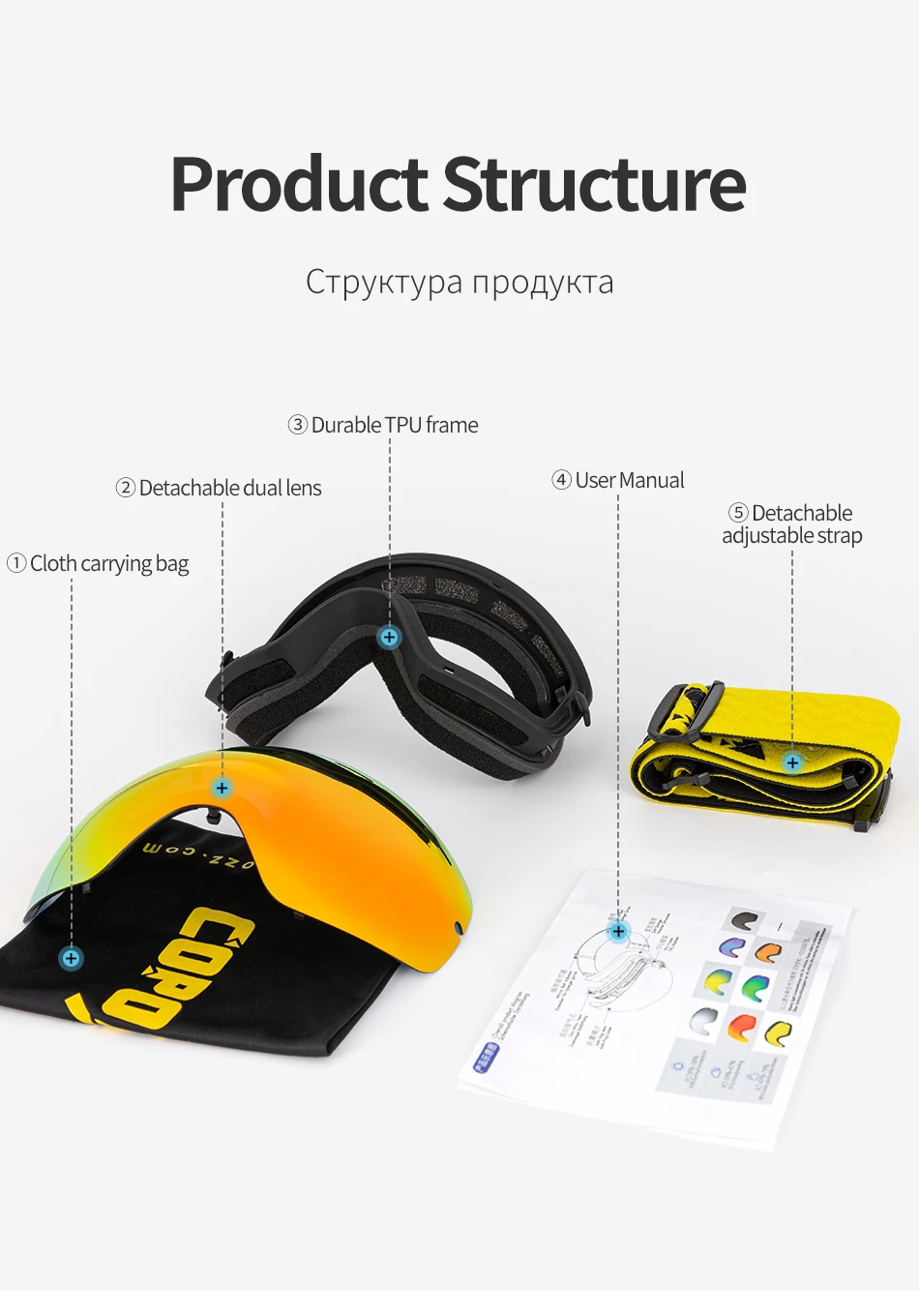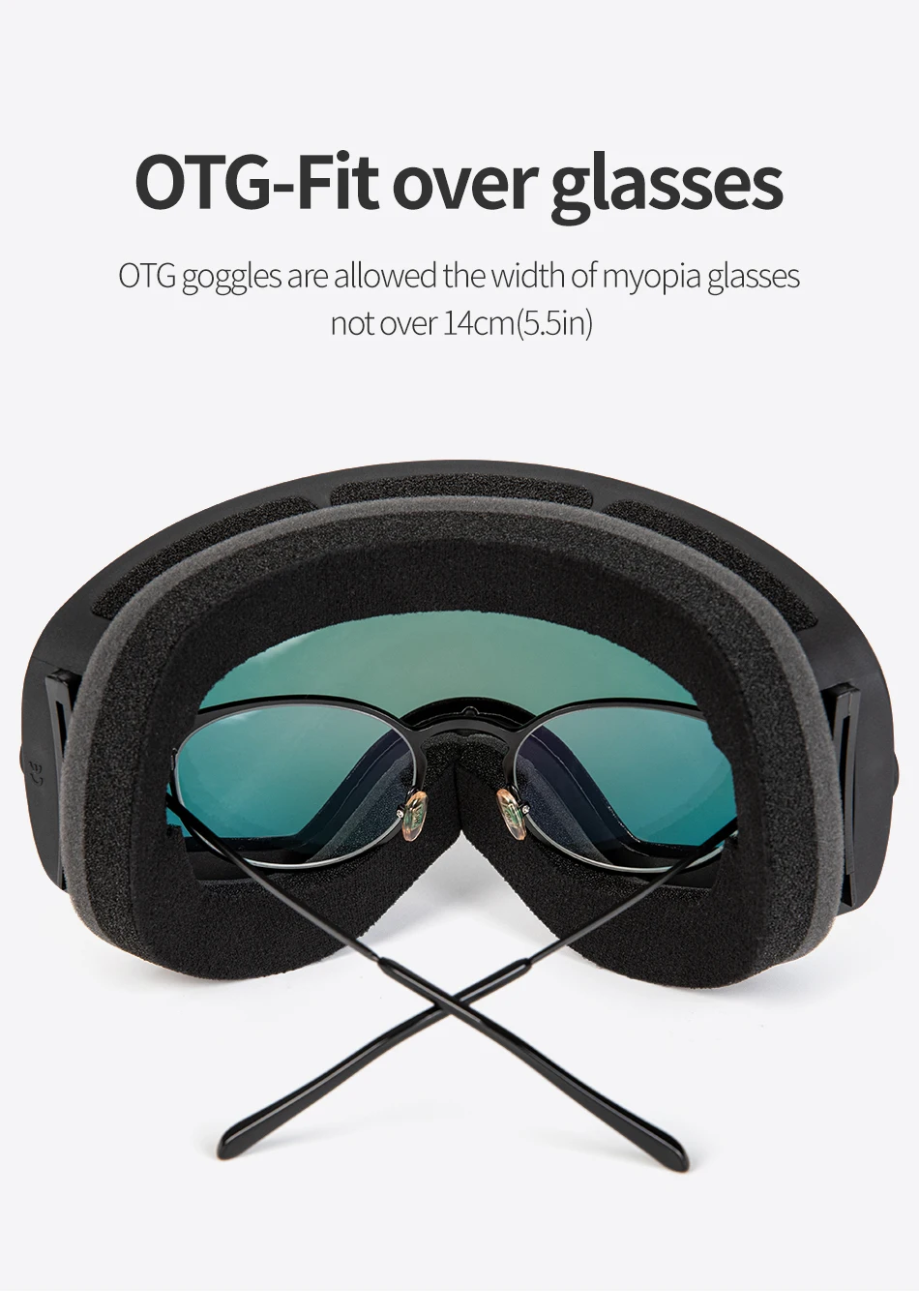 Wear Over Glasses (OTG)– COPOZZ Goggles features a OTG (over glasses) design that lets you wear your glasses under the goggles.