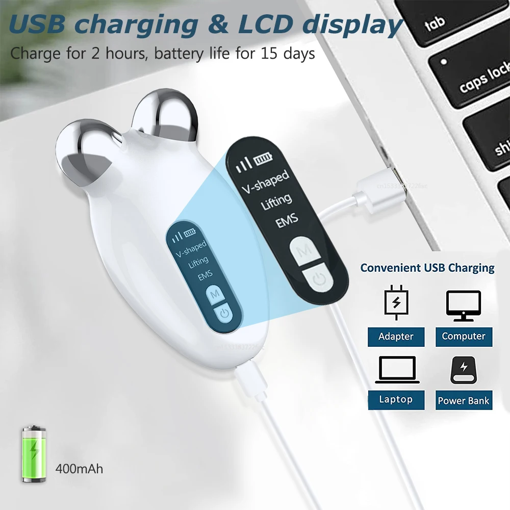 3 modes: v shaped, lifting and EMS, the product vibrates. In the Lifting mode, the metal balls are heated, it is a pleasant heat. In EMS, release little electric shocks, they're comfortable, they didn't bother me. The battery always appears charged. The progressive download on your screen is not appreciated. I use it with medical grade conductive gel. Charging time is good.