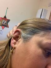 Arrived today very sparkly pretty goes lovely with my hoop earrings. I have put it onto my ear and adjusted the grip. It’s adjustable. Love the look I’m going to spend a day and see if it stays on my ear then order another one. Very pretty