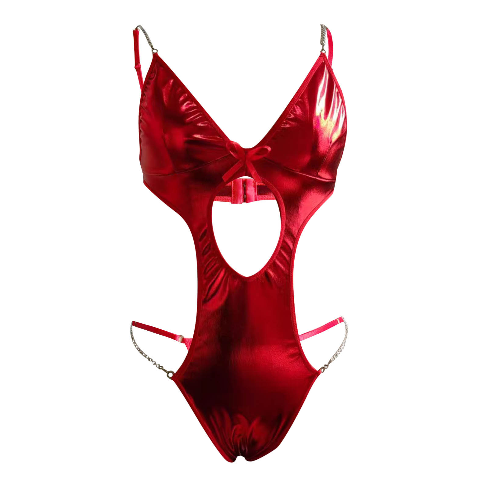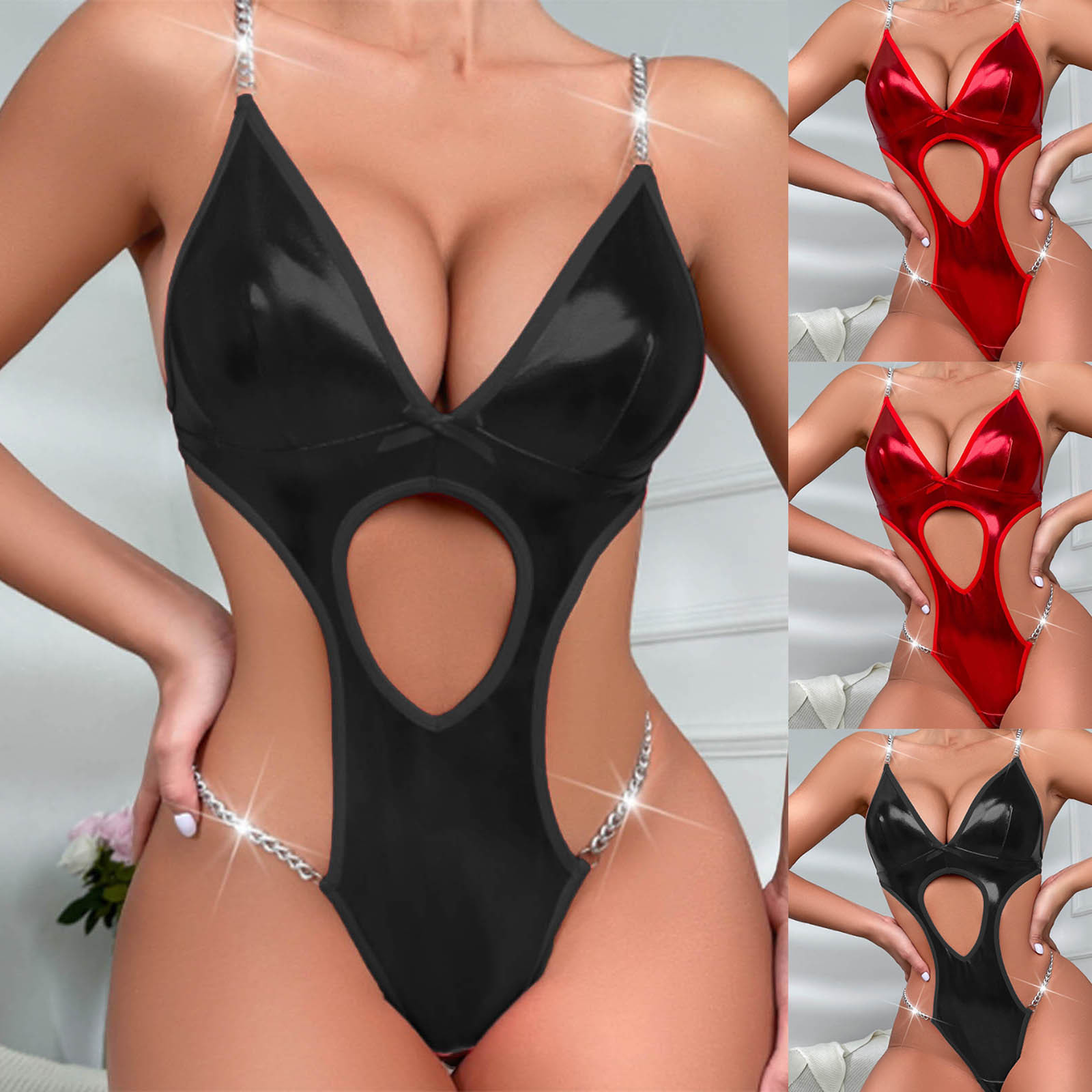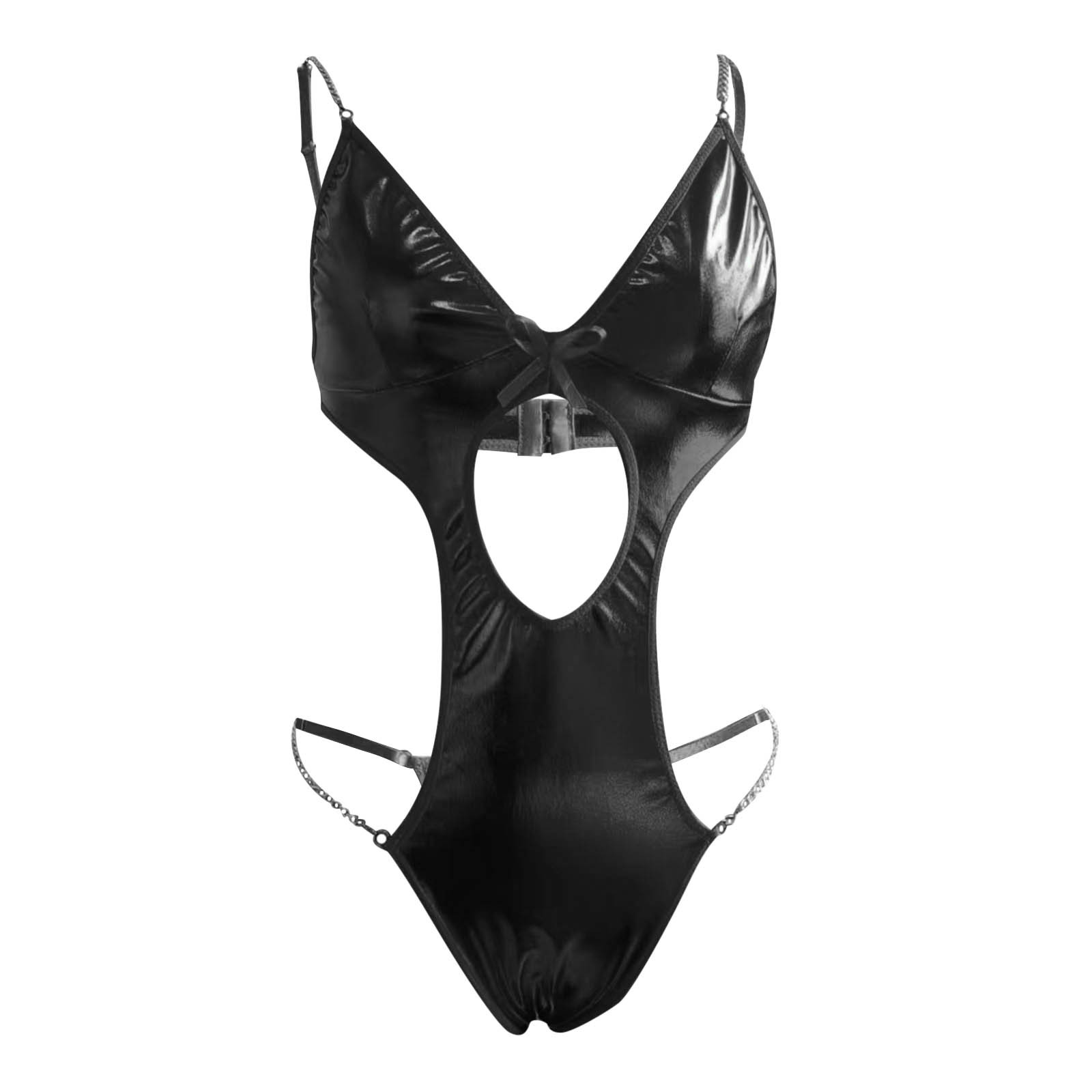 PU Leather Bodysuit: Sexy Lingerie with Chains, Backless Design – Sleepwear and Fetish Underwear