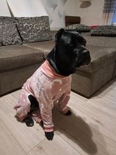 i bought it for my galgo who due to illness became very underweight. Even though his back length is 79 cm, much longer than what was written for the XXXL size, it still fit perfectly because he is so narrow so the material can stretch. He loves it and wears it to bed. The only thing to keep in mind is that since it's so big and hanging on him it covers his genitals so I have to pull away at the stomach if he needs to pee in it. Also I washed it once and it washes very well and dries quickly. Will order another one in case of accidents.