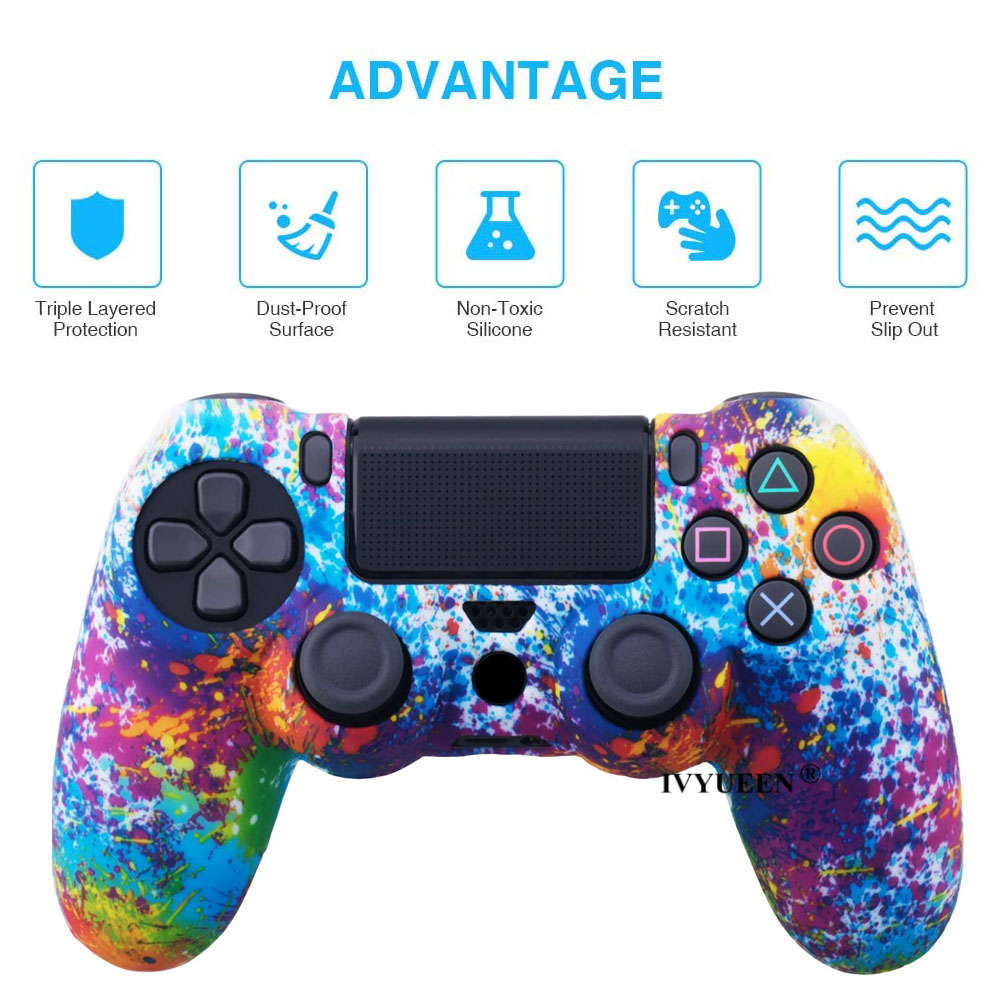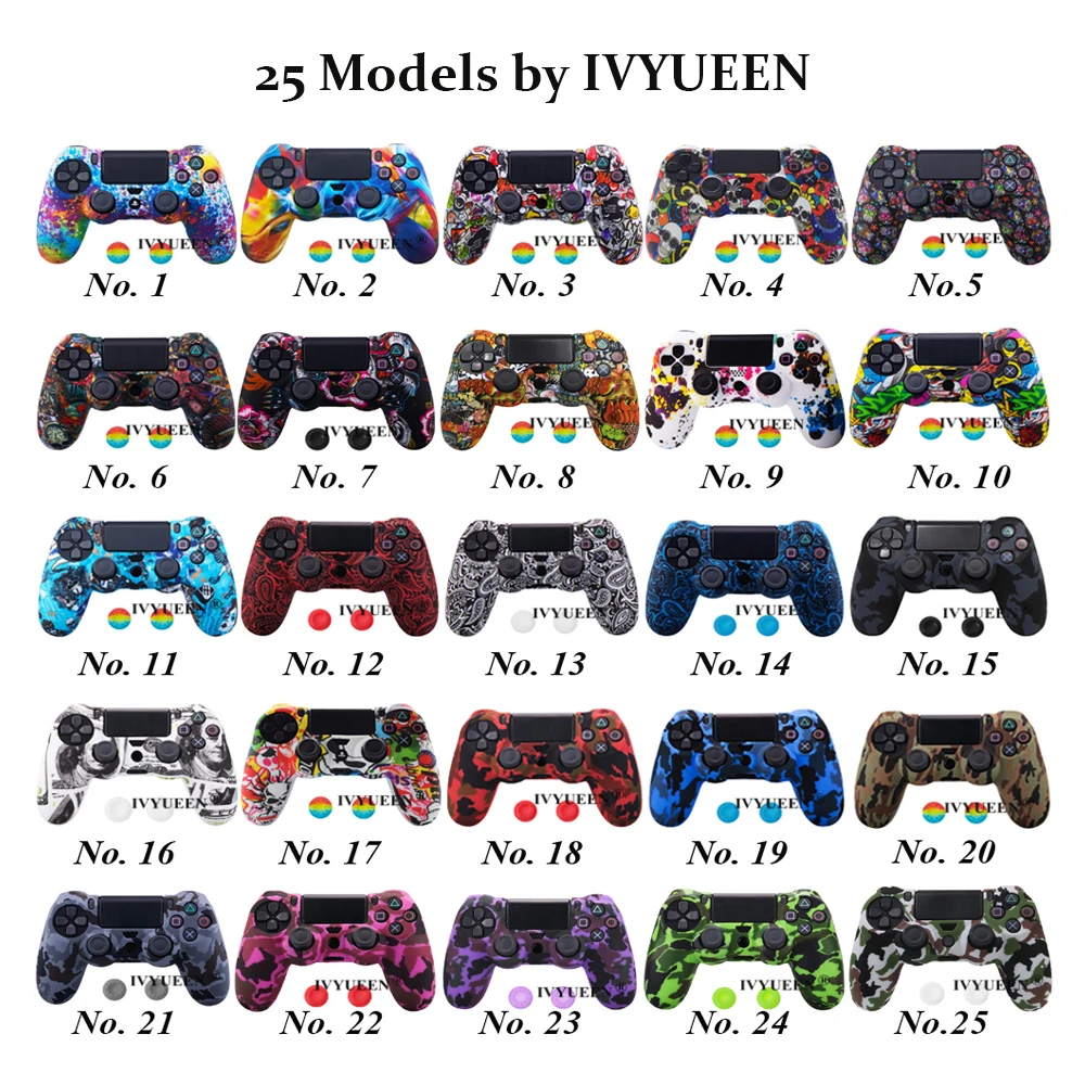 IVYUEEN 25 Colors Silicone Camo Protective Skin Case For Sony Dualshock 4 PS4 DS4 Pro Slim Controller Thumb Sticks Grips Caps