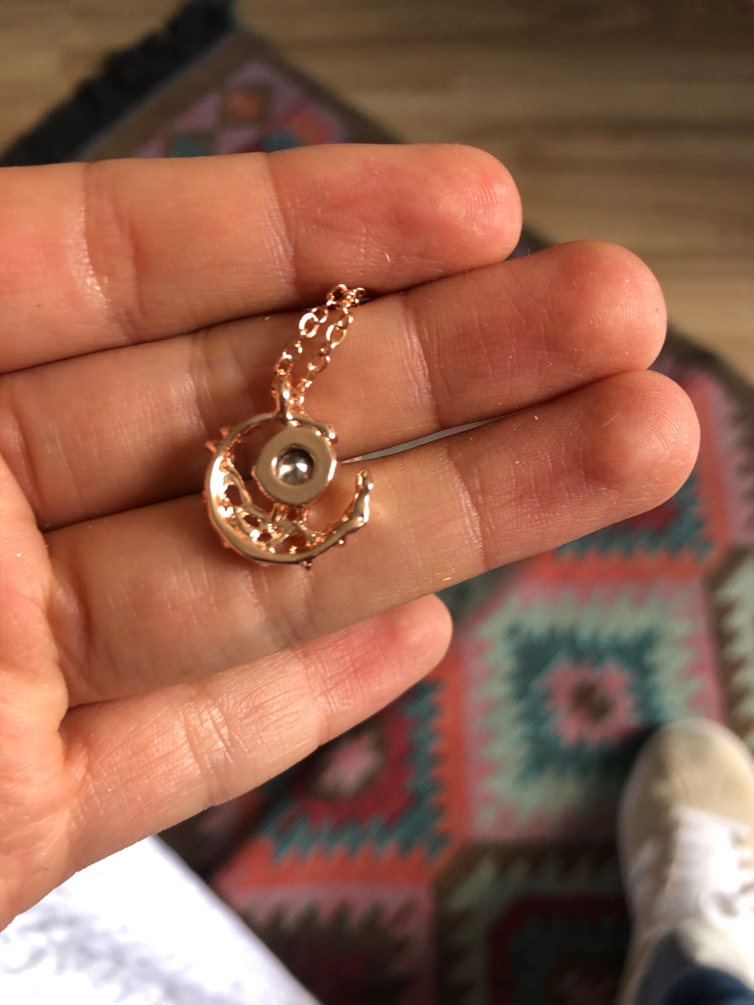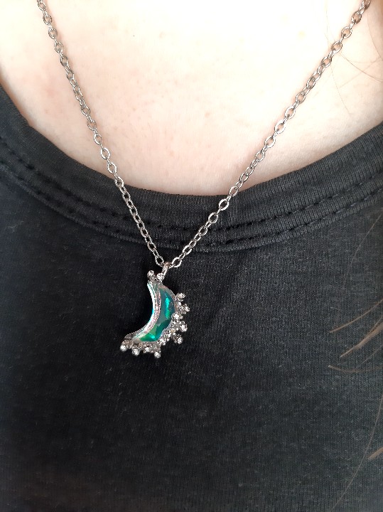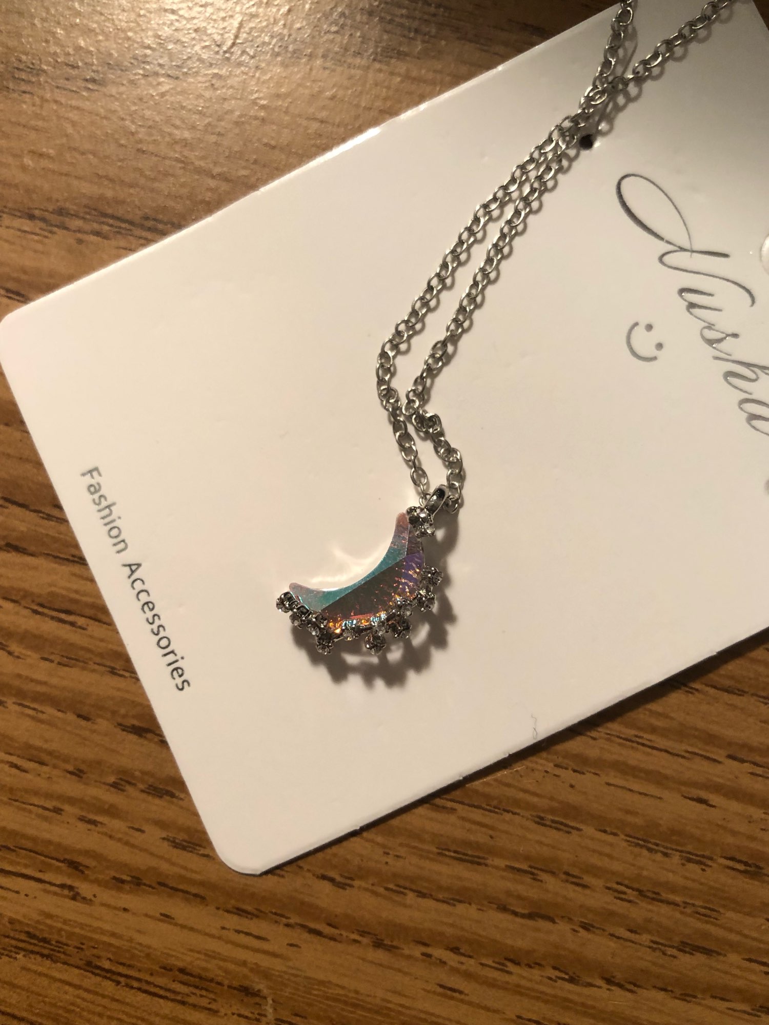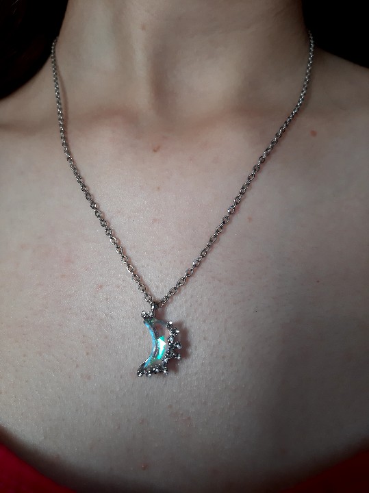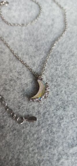 One of my pendants now. It looks very nice. Everyone who liked it. The chain is long. The moon itself is not large and not small, quite normal size. Everyone is happy