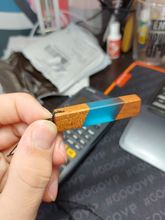 Really pretty contrast between the blue acrylic and the wood. Compliments on my first time wearing it.