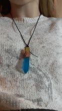 The pendant corresponds to the picture. The resin part is matte. Thread length is adjustable