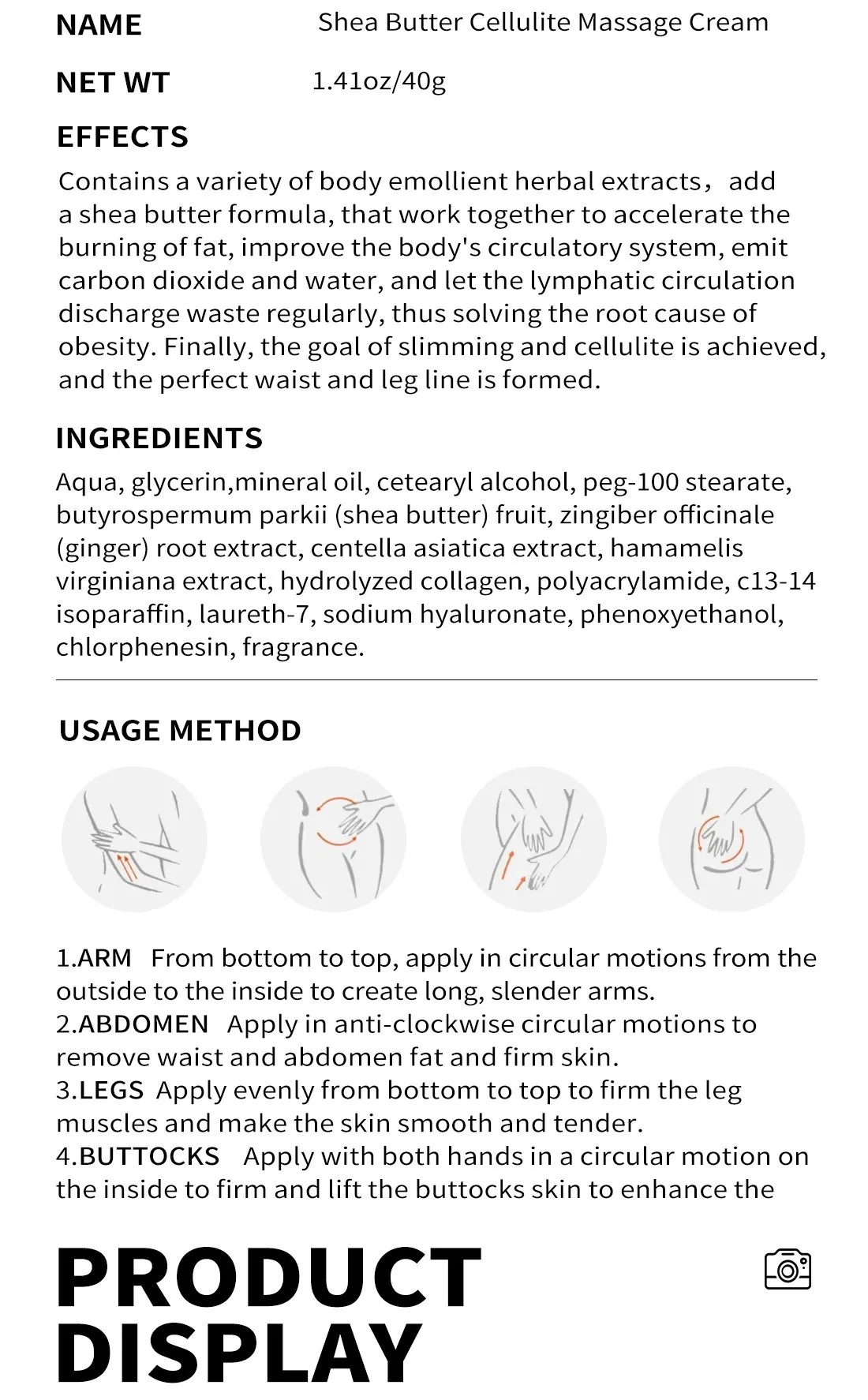 The effect of the slimming cream is very good. With the help of this slimming cream, I have successfully lost weight. After using the slimming cream, it is not irritating, but can feel very comfortable. I usually use this one every night, along with my daily workouts, and I've managed to lose weight. Fat is constantly being burned. Very good item.