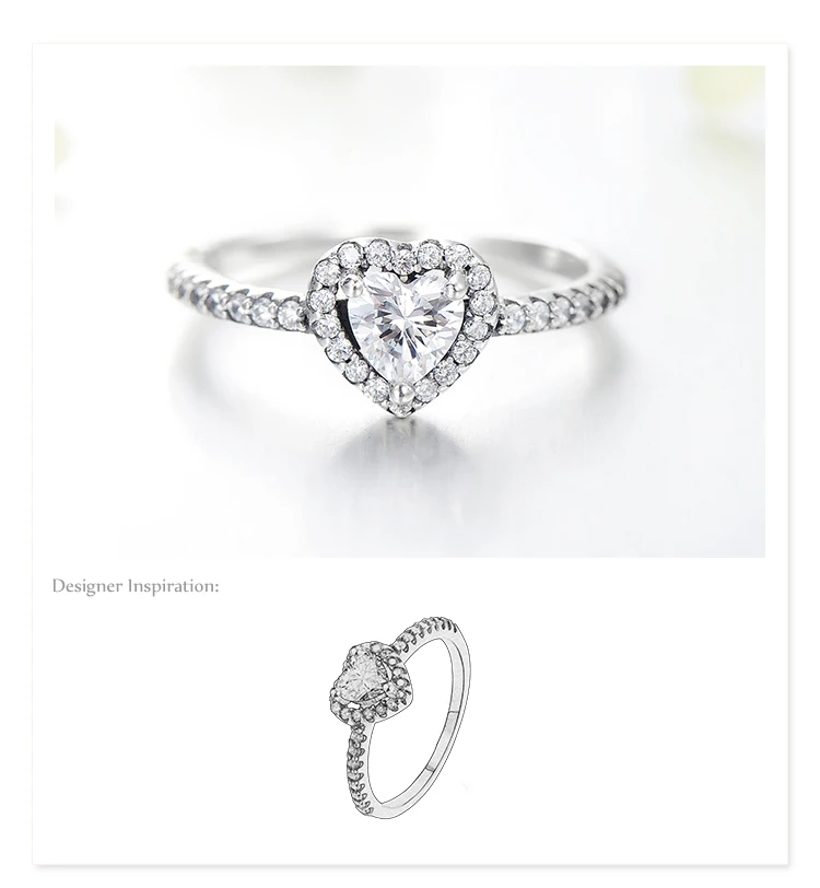 Vintage Heart Clear CZ Finger Ring Rings Ring Size : 5|6|7|8|9