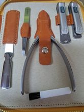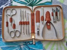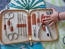 A decent set for its price, all as in the store's photo. Cutters, scissors sharp. Especially liked the file and pusher. Of the small disadvantages-the absence of protective caps on the blades of the scissors and the file, and also raises questions about the curette-matte and without the manufacturer's logo, is strongly knocked out in appearance from other tools. Delivery delayed by 1 day