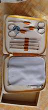 I received the order very quickly. The packaging is great. Tools of good quality. Thanks to the store. In general I am satisfied, but the case of the set is not made of genuine leather, perhaps high-quality leather. Substitute. Tool pad, also made of artificial material.