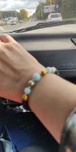 очень красивый браслет, в темноте светится, рекомендую товар, заказывайте продавец отличный,в подарок положили ризиночку,и здесь все мои заказы, благодарю за всё!!! пришло одним днём,и в одной посылке!!!