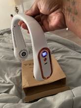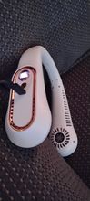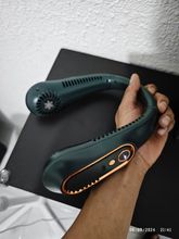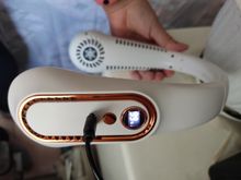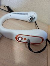 Works well, you feel the difference in speeds, what I noticed is that the air comes out from the ventilation of the neck, not the circular ends, There it does not feel that air comes out or at maximum speed, which is disappointing and misleading from the publication since the air does not go out through all the holes. The charging cable is excessively short, the charging time is good, it doesn't seem so slow to me. Lasts several hours of intermittent use. It does not weigh, but after a few hours, it is already uncomfortable to bring it on since being plastic it heats up and sticks to the skin with body heat. It's not noisy, but by bringing it so close to the ears it could feel like it is, it's getting used to it. I'll keep it to relieve menopausal hot flashes in addition to the ambient heat