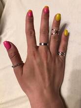 An excellent set of rings, the quality is very pleased! (there is something to compare) By quantity all is correct. The size is pleasant, not quite small, some rings can be adjusted in size. I advise. Yes, and the delivery pleased, a little more than two weeks. Anyway, I'm happy.