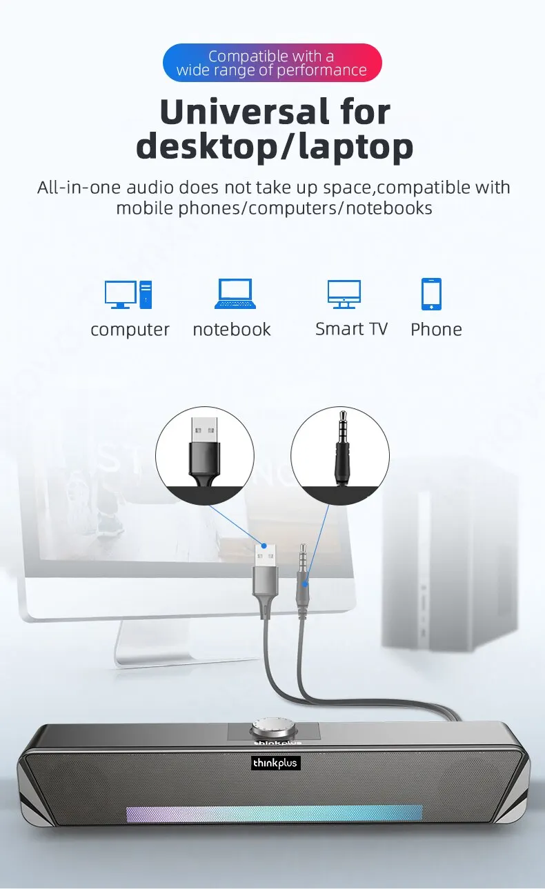 The packaging came a little kneaded, but the product was intact. The sound is weak (6w). The led Bar has 3 options: Rainbow, according to the sound and off. The volume button is cool, but it does not have the indicator of where the volume is. The led is lit when you turn off the PC.