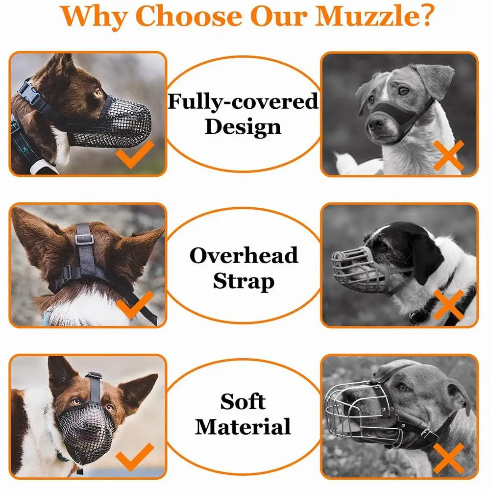 2、【Outdoor Safety】: Soft Mesh Covered Muzzles that act as an effective barrier to prevent your dog from eating poison bait, biting pedestrians, scavenging, and chewing while outside.