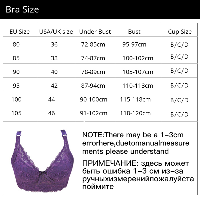 Love these bras. Are great made, well lie, there are also comfortable. I wear European 75D/E and zamówiłam 85D. IS did-zapinam it on najciaśniejszą haftek line (smaller circuit also would probably fit but bałam the that then Cup will also less). Is my another purchase and I am as always very satisfied. For low price we get product repair high quality. Pack dotarła in 2 weeks from order. Super.