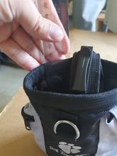 The pictures in the shop are deceiving, it is a very tiny pouch. 14cm is not enough space to put in treats and other toys when taking my dogs put for a walk. Since this was my fault for not checking the measurements a 2nd time, I will give it 5 stars because it arrived quickly and it is of good quality. But if you have more than 1 dog or are looking for a spacious pouch, DO NOT BUY THIS.
