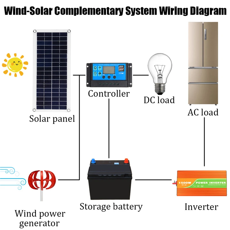 The solar system includes 4PCS 100W 18V flexible solar panels. It can achieve a wind solar complementary system and can be directly connected to the LCD hybrid controller.