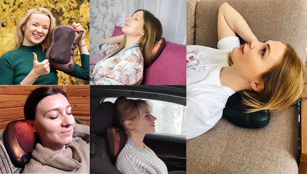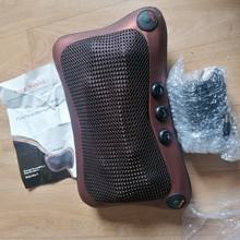 The pillow came in 5 days, with delivery to the house by the transport company. I ordered, because at work there was a strong migraine from the clamp in the cervical department, the colleague gave her pillow. it helped a lot. I ordered with 12 heads, and on the box a photo with 8 m. Almost upset, but the investment was correct. There are plug for home power supply and adapter for car. The button can change 3 massage speeds. I already tried it, it works fine-it massages and warms. At a discount on the promotional code cost 1300 rubles. The store definitely recommends-the price and delivery speed are excellent.