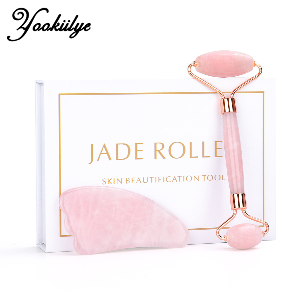 Rose Quartz Jade Roller Face Slimming Massager Face Lifting Natural Jade Stone Facial Massage Roller Skin Care Beauty Set Box