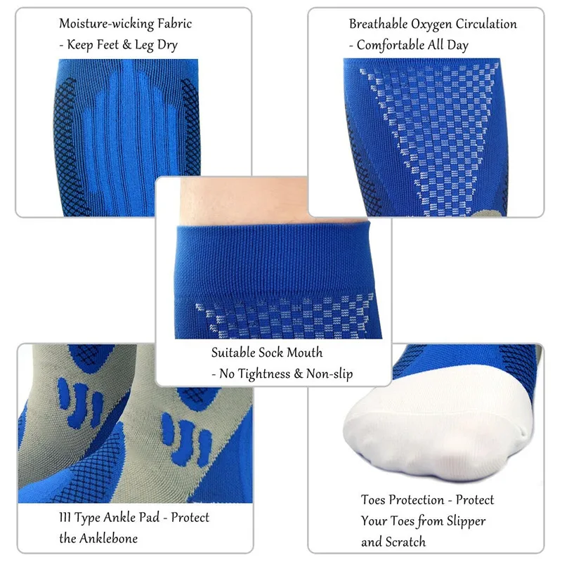 Whether you’re an athlete who wants to excel in the game, who sit for long period during travel or at work, or someone dealing with pain due to a chronic condition, supporting proper blood flow to your feet is of the utmost importance.Our Compression Socks are engineered with the latest arch to calf compression technology, offering a targeted foot to calf muscle support,help to keep blood flowing to boost athletic performance and alleviate pain due to a number of conditions.