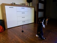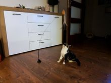 This is the best toy I have for my cat. D-Sucker Is amazing. it holds very well to "panel" floor and tiles. My cat liked it so much that I had to take it away to avoid to much exhaustion. Noice