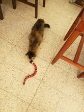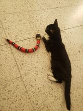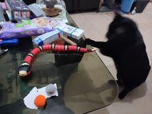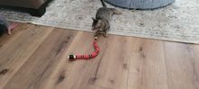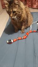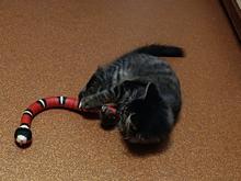 Funny toy. I do not know how the cat (not yet tested on it), but the whole family is delighted. The snake moves fast and very unpredictable. Flashing eyes, toning out. Nice thing. Delivered to the Moscow region in 12 days, packed in a colorful box and air-bubble film. Delivered in disassembled form, and a cord for charging is attached to it. The store many thanks for the good thing and an excellent order.