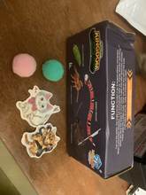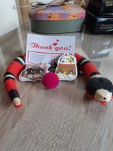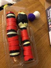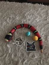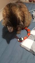 Пришло быстро, совместной доставкой, коробка вся измятая, змейка не повредилась, работает, коты сопровождают её! Были вложены 2 маленьких мягких шарика для котов и картинки...